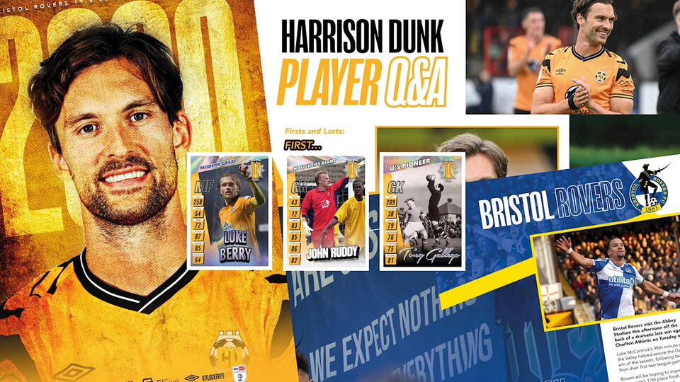 Club legend Harrison Dunk is a fitting cover star for our 2000th Football League game, and he spills the beans on our Player Q&A inside Saturday's programme.