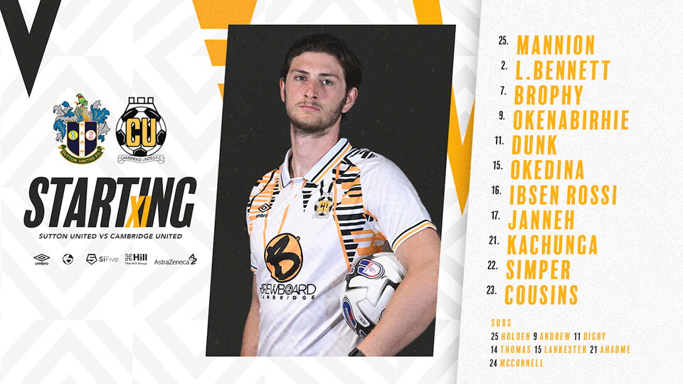 Ibsen Rossi returns from long-term injury to partner Okedina at centre-back, whilst Kachunga and Cousins make their competitive full debuts. Harrison Dunk captains the side.