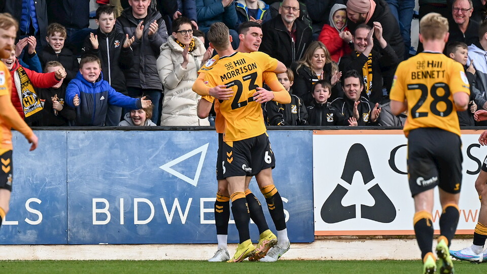 Cambridge United: Mitov, Morrison, R. Bennett, Jones, L. Bennett, Digby, McGrandles (Worman, 76), Brophy, Lankester (Thomas, 68), Smith, Ironside