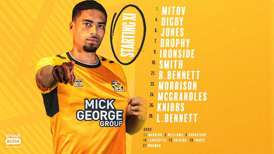 Starting XI: Mitov, Digby, Jones, Brophy, Ironside, Smith, R.Bennett, McGrandles, Morrison, Knibbs, L.Bennett