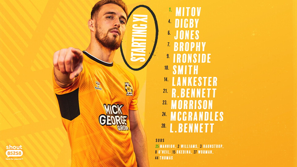 Starting XI: Mitov, Digby, Jones, Brophy, Ironside, Smith, Lankester, R.Bennett, Morrison, McGrandles, L.Bennett