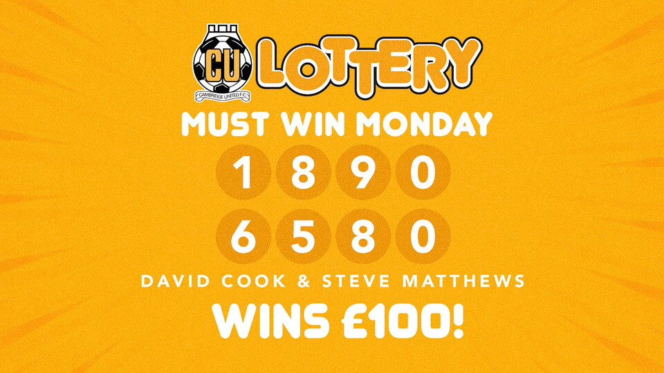 Sign up to the CUFC Lottery from just £2 a week and be entered into all three draws whilst helping improving facilities and the fan experience at the Abbey Stadium.
