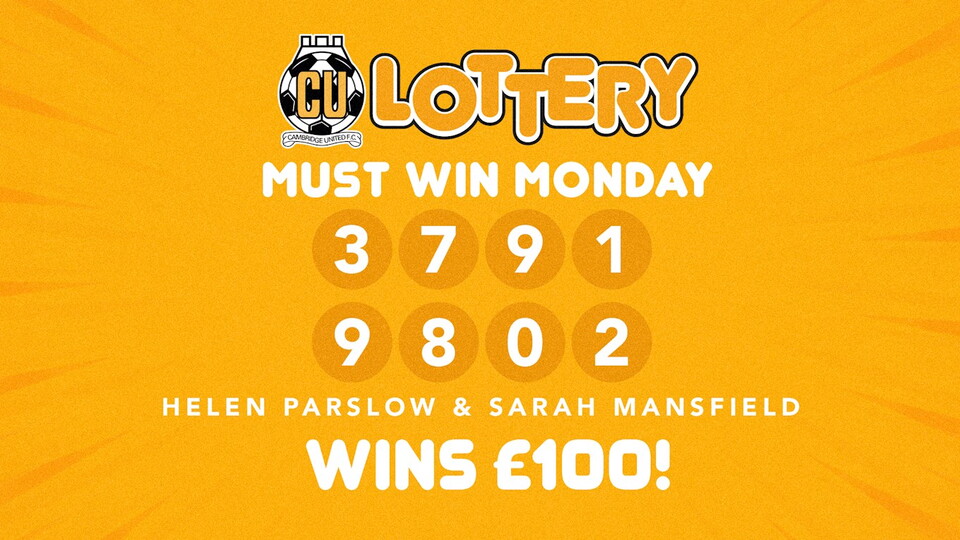 Congratulations to this week's CUFC Lottery Must Win Monday winners, Helen Parslow & Sarah Mansfield...