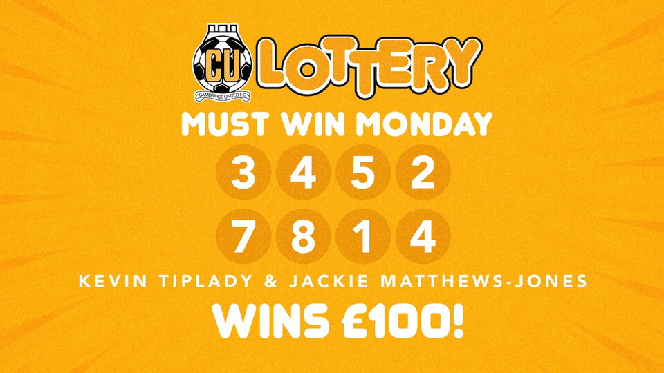 Congratulations to this week's CUFC Lottery Must Win Monday winners, Kevin Tiplady & Jackie Matthew-Jones...