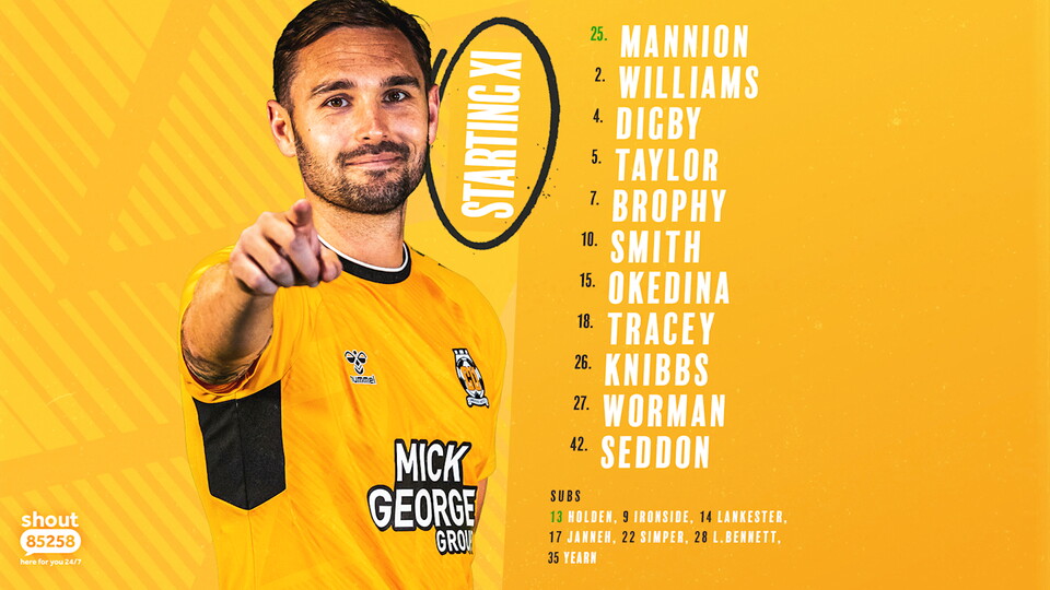 George Williams, Ben Worman and Shilow Tracey also return to the starting line-up, seeing Liam Bennett, Lewis Simper and Saikou Janneh drop to the bench.
