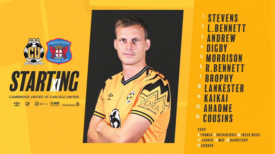 An unchanged starting XI has been named, as the U's boss opts for the same team that picked up a point against Portsmouth in midweek.