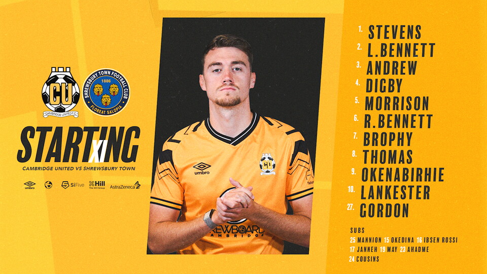 Mark Bonner has named his team for this afternoon's Sky Bet League One clash with Shrewsbury Town...