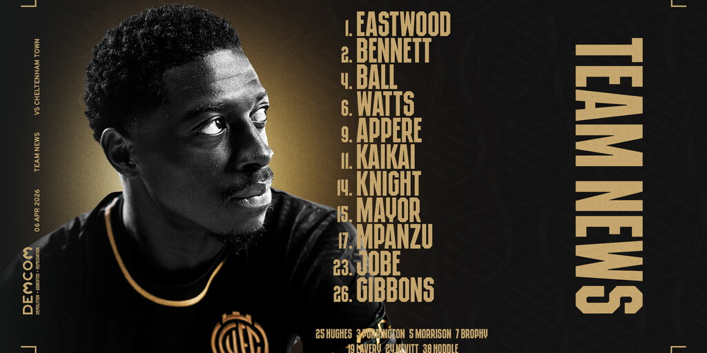 - Starting XI: Eastwood, Bennett, Ball, Watts, Appere, Kaikai, Knight, Mayor, Mpanzu, Jobe, Gibbons