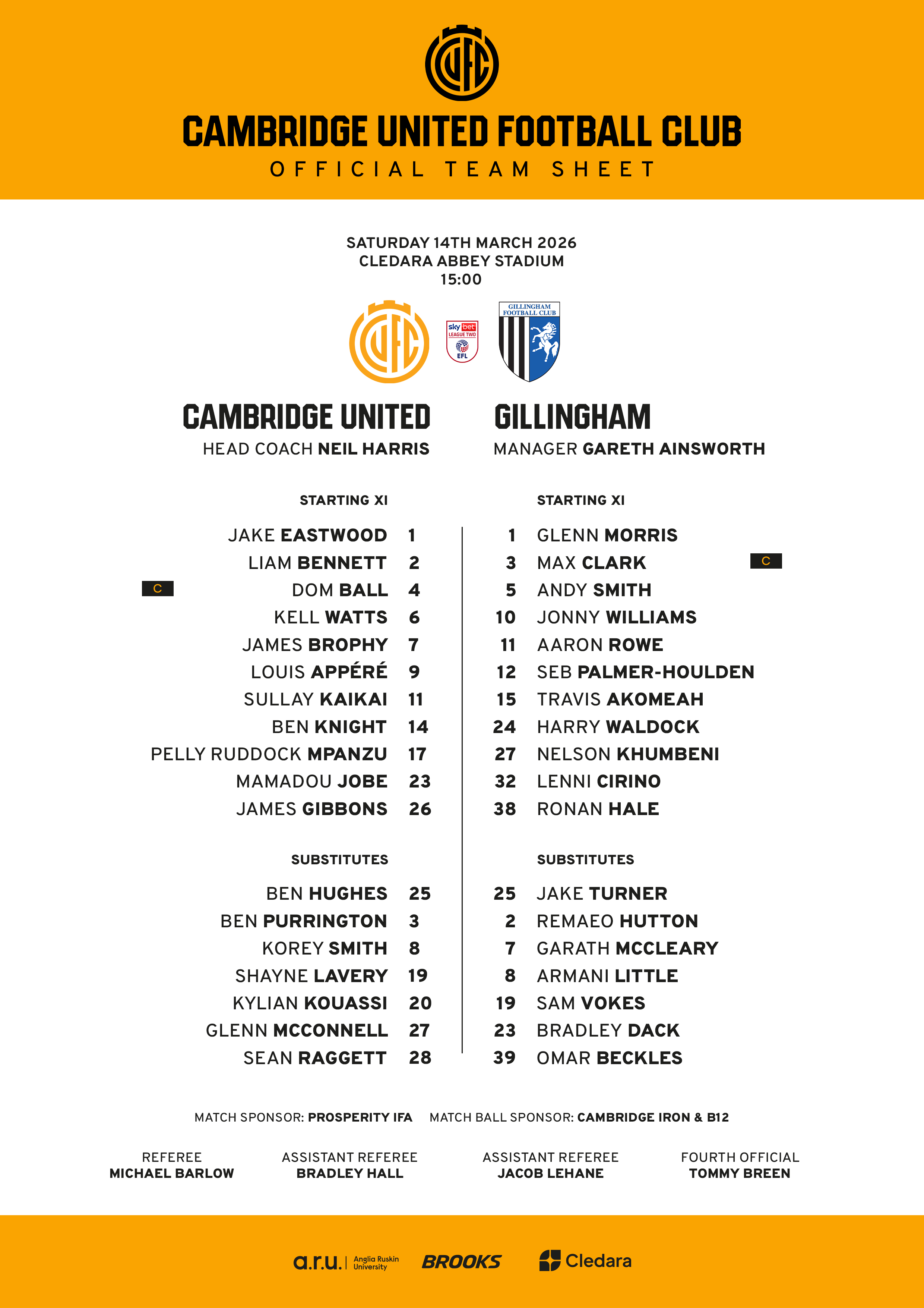 Click here to download an official teamsheet.
