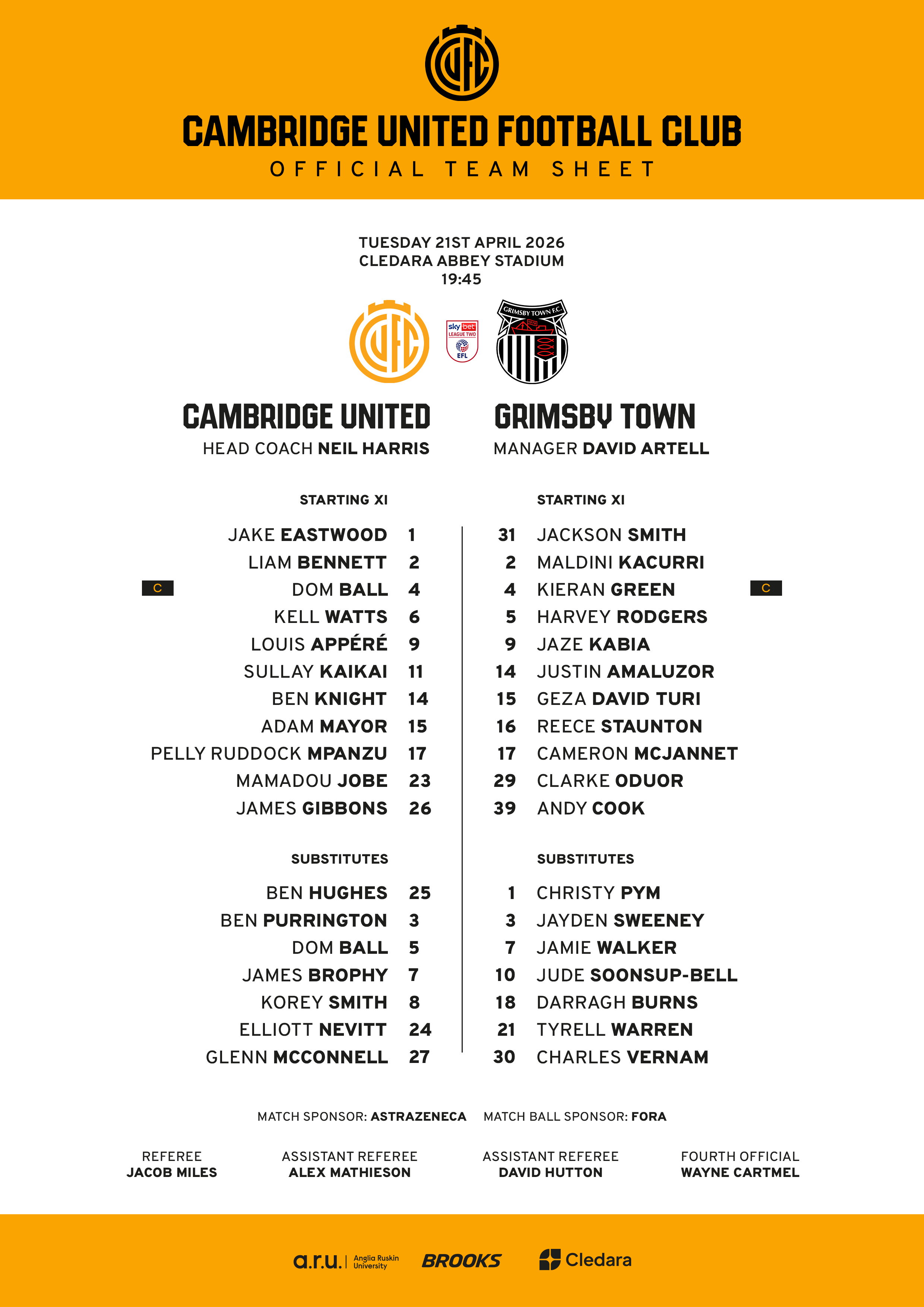 Click here to download an official teamsheet.