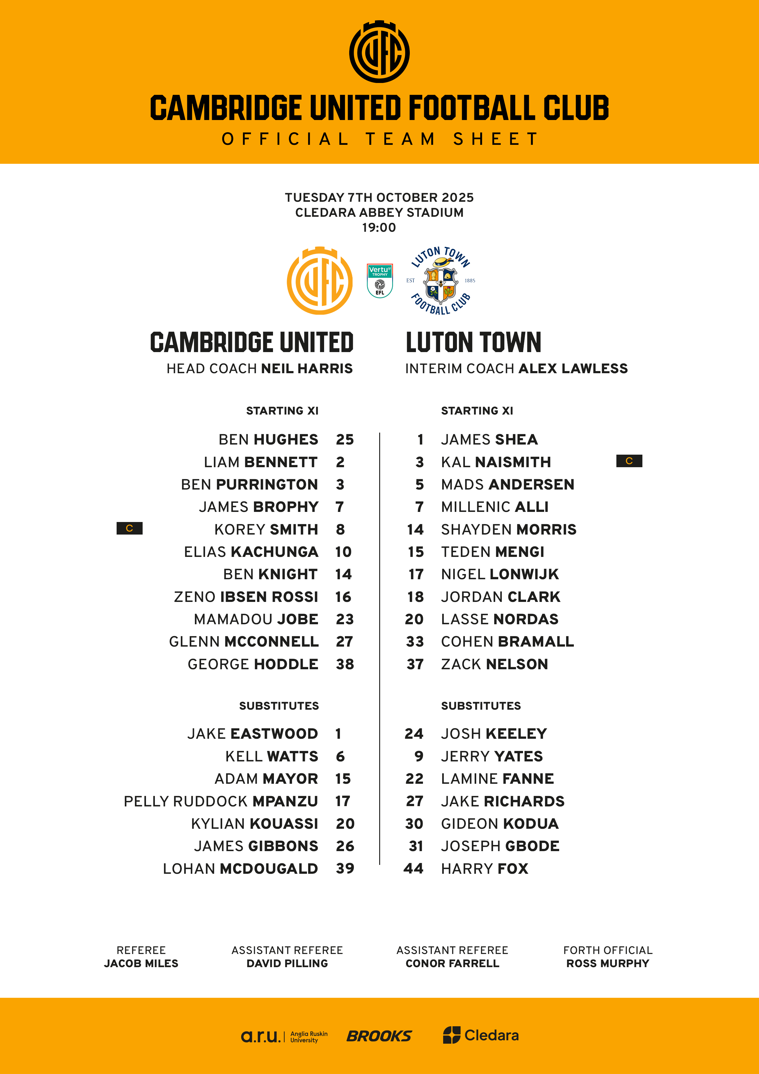 To download an official teamsheet, please click here.