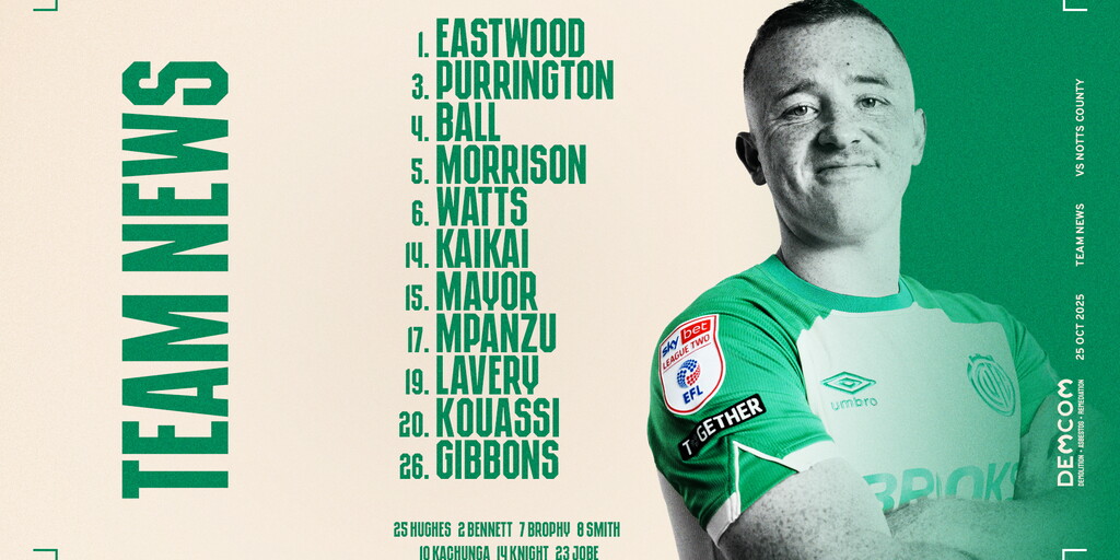 - Starting XI: Eastwood, Purrington, Ball, Morrison, Watts, Kaikai, Mayor, Mpanzu, Lavery, Kouassi, Gibbons
