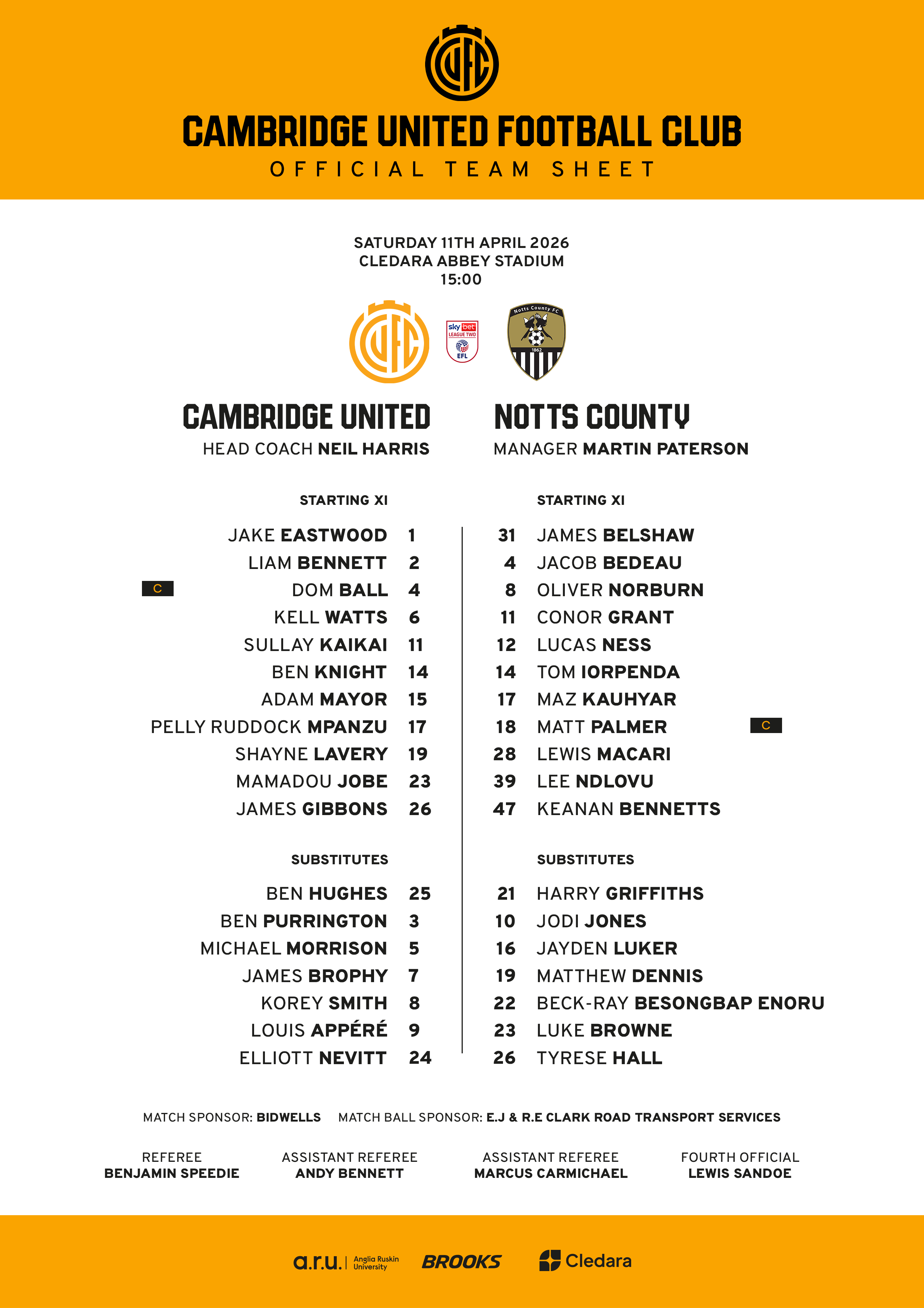 Click here to download an official teamsheet.