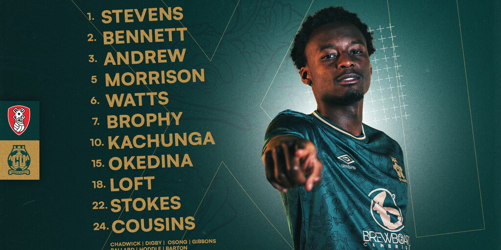 - Starting XI: Stevens, Bennett, Andrew, Morrison, Watts, Brophy, Kachunga, Okedina, Loft, Stokes, Cousins